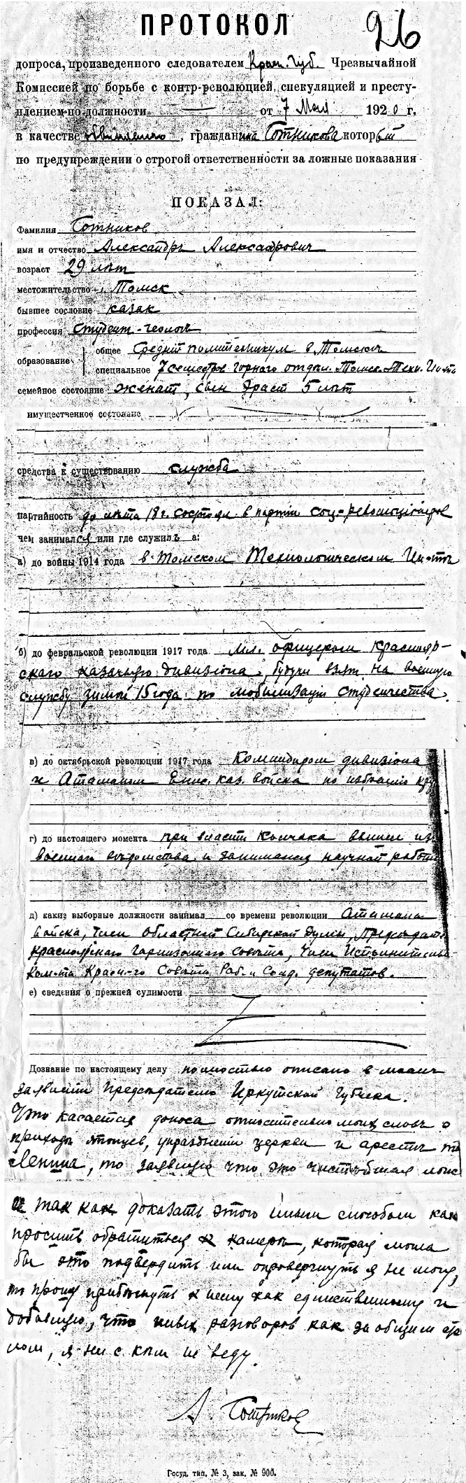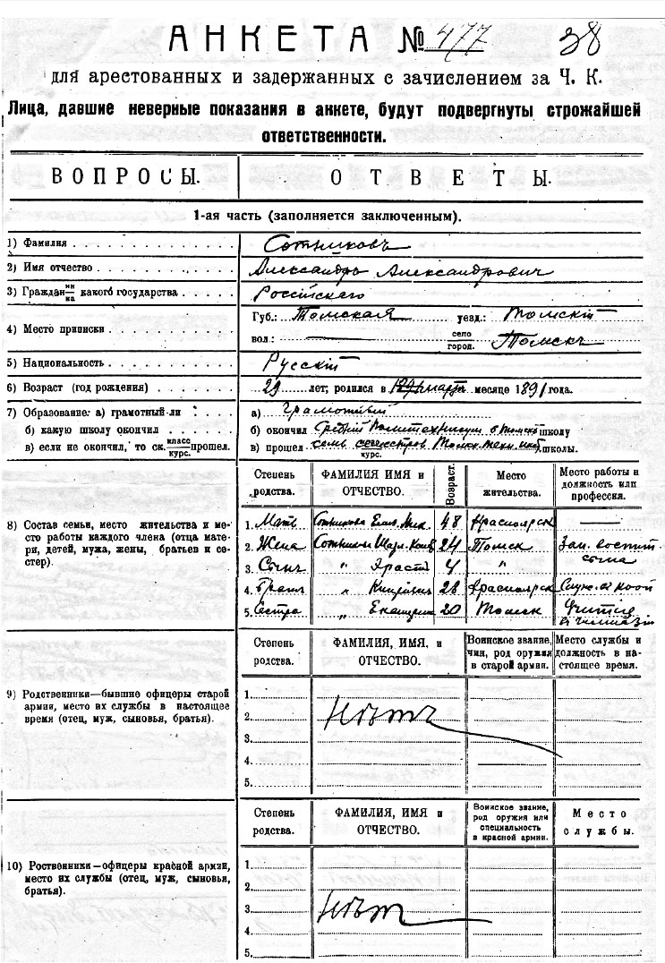 В 1915 Сотникова призвали в армию. Потом - революция. Гражданская война. Власть в Сибири перешла к Колчаку.