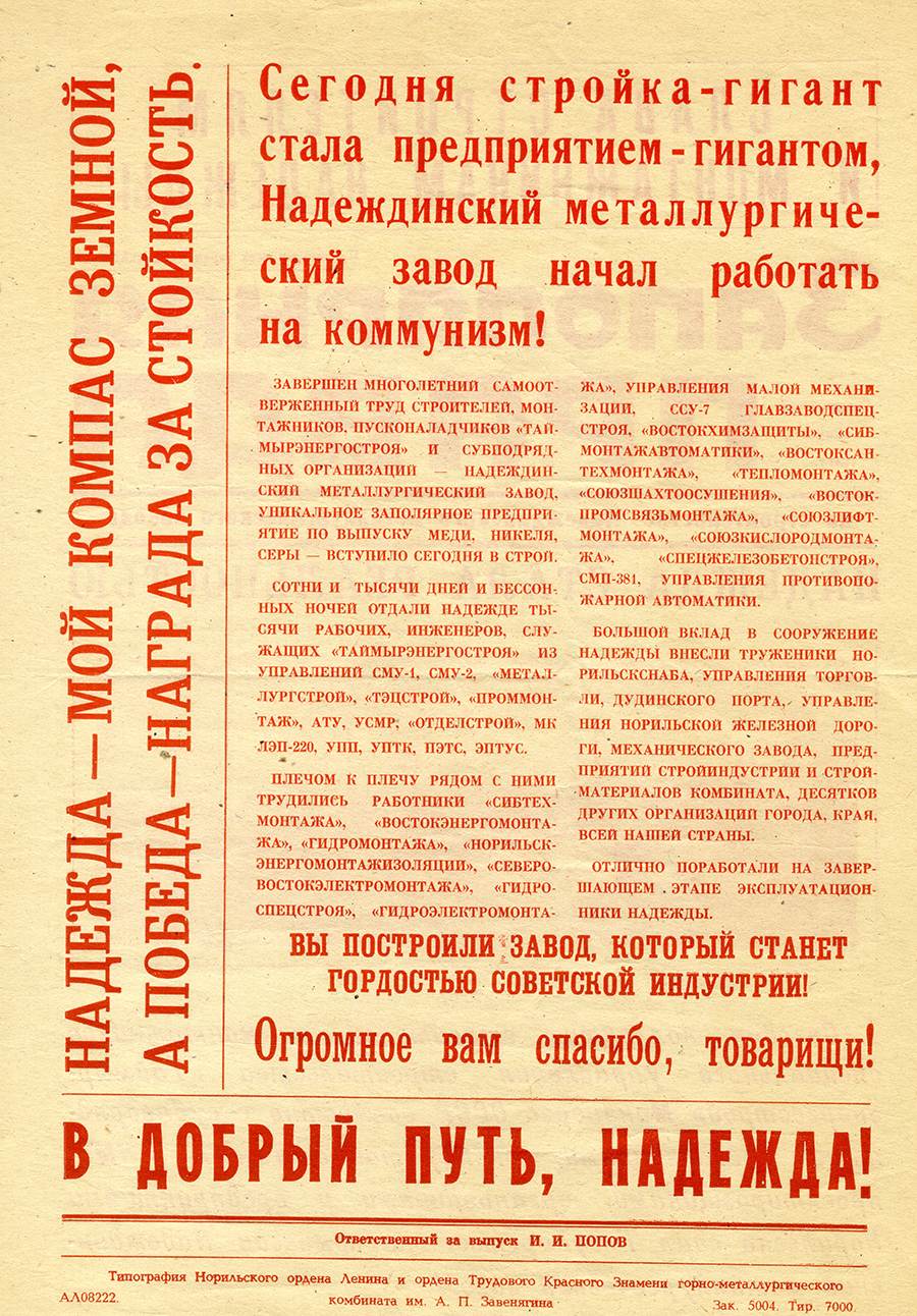В 1969 году из госкомиссии по запасам пришел документ с итогами многолетнего исследования талнахских месторождений. Геологи обещали Норильску безоблачное будущее на многие десятилетия вперед, а комбинат мог увеличить производство никеля и меди в 10 раз! Одновременно стало понятно, что «переварить» руду Талнаха Никелевый вместе с Медным, рассчитанные на гораздо более бедные норильские месторождения, не смогут. Нужен был завод мощнее и современнее своих предшественников.